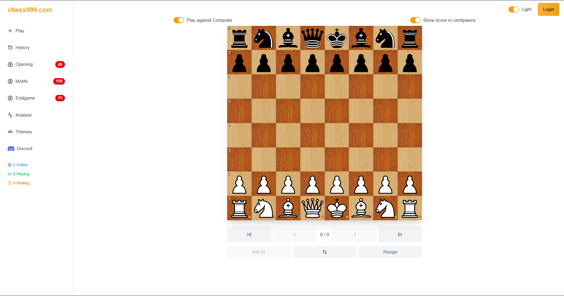 A full-featured chess platform offering single-player and online multiplayer modes. Play with friends, challenge the computer, analyze moves, explore openings, train with endgames, track your history, and improve your chess skills with built-in AI tools.