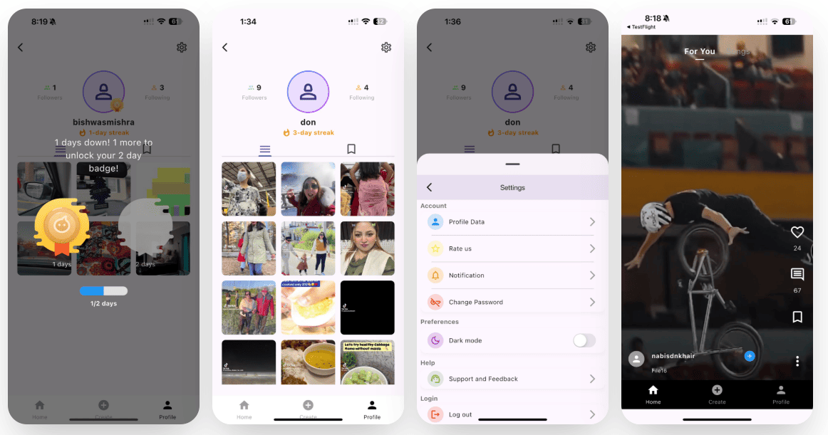 A mobile app for short-form content that empowers users to share moments, express creativity, and connect with a vibrant community.
