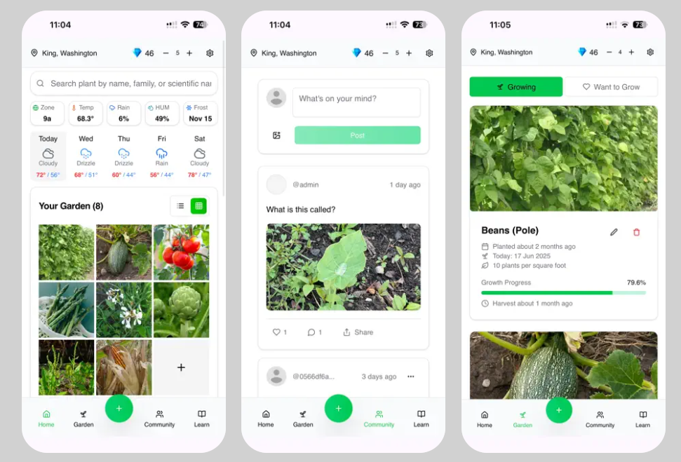 A real-life gardening companion that helps you track plants, know when to harvest, get local Pacific Northwest weather updates, and receive personalized tips to grow better. Like a farming simulator—but for your actual garden. View plant details, stay organized with notes, and manage your garden with ease.